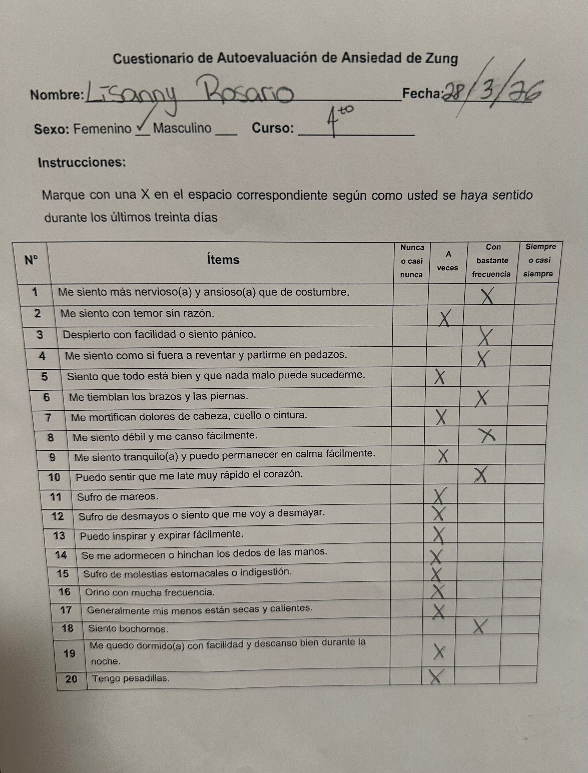 cuestionario de ansiedad de Zung